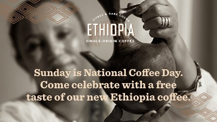 At Starbucks locations you can get a free taste of their new Ethiopia coffee.