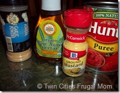 I figured this would be an easy recipe. The whole process took about an hour from start to finish, and used tomato puree, chopped onion, celery and red bell pepper, agave nectar (which doesn’t spike blood sugar like most sweeteners) and a few other simple ingredients. I wasn’t crazy about how the apple cider vinegar smelled while it cooked, but it tasted ok when it was done, and works great on my veggie burgers and with our homemade garden potato fries. I’d probably try this recipe with regular white vinegar next time.