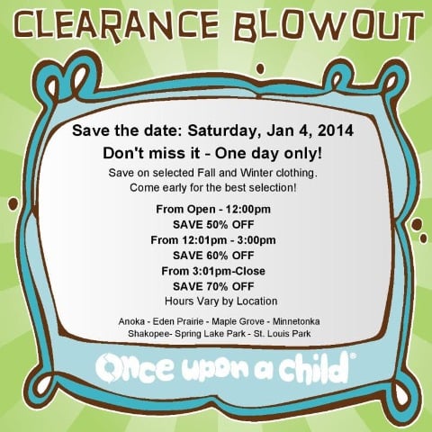 Once Upon a Child is having a Clearance Blowout sale this Saturday, January 4th at 7 participating Twin Cities locations!