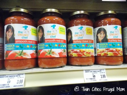 The Sneaky Chef foods are available online and at grocers like Lund’s and Byerly’s. I found them at Byerly’s and though the prices were a little higher than for other similar products, considering how unique and nutritious the Sneaky Chef products are, the extra cost is worth it. The pasta sauces, for example, were $3.99 per jar and the no-nut butter was $7-8.