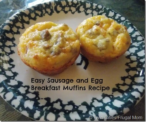 This recipe makes 12 yummy sausage and egg breakfast muffins that costs little and is very simple.