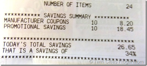 And our savings printed on the receipt – we saved $26.65 or 34%! That’s pretty cool considering how easy and quick the whole experience was (well, quick except for a few times when the kids wanted to buy toys and candy – maybe we won’t take them next time!).
