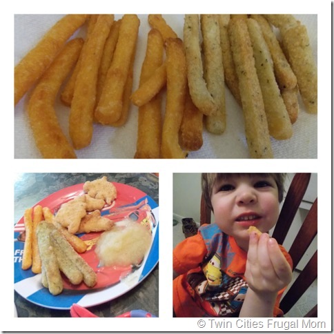 I picked up four bags of Veggie Fries – one of each variety – at my local Byerly’s store. Then over the next few days I tried them with Thor with various main entrees including chicken, fish, burgers, and corn dogs, and even just on their own as a snack!