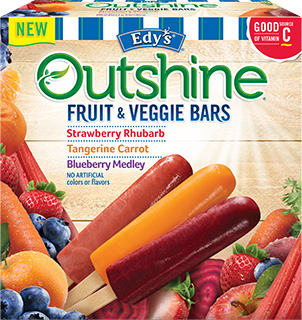 Outshine Fruit & Veggie Bars each contain 25% vegetables, and are made from vegetable purees and juices. There are five flavors: Blueberry Medley, Tangerine Carrot, Apple and Greens, Peach Mango Medley, and Strawberry Rhubarb, as well as a 12-count multi-pack featuring Blueberry Medley, Strawberry Rhubarb, and Tangerine Carrot. (Yum!) Visit their Facebook page here.