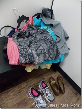 After spending a long time going through tops, pants, shoes, purses, workout clothes, dresses, skirts, and accessories, it was on to the dressing room! I found a nice variety of clothes for both work and leisure.