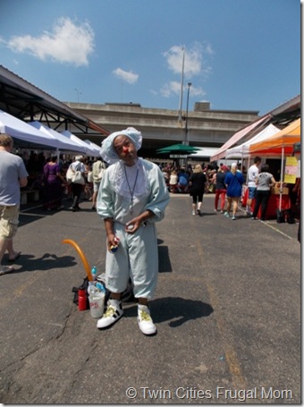 Of course, my kids are always on the lookout for the clown who makes balloons. His name is “Chik’n Wing” and today he was a funny, juggling baby. He posed for this picture for me.