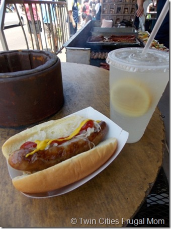 A regular “must” for me when we first arrive is a fresh bratwurst and lemonade from the Untiedt’s hot dogs and brats stand ($8 for both). Their bratwurst is sooo hearty and good and the lemonade is the BEST lemonade I’ve found anywhere. I just wish they sold a bigger size!