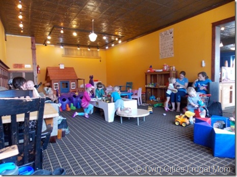 Sovereign Grounds is located at 813 E. 48th St. (48th & Chicago) in Minneapolis. Half of Sovereign Grounds is an indoor playroom with all kinds of toys, mainly geared toward younger kids. My kids ran in and got busy right away, playing with everything in the room for the nearly 2 hours that we were there.