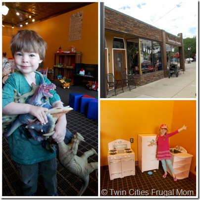 Sovereign Grounds is located at 813 E. 48th St. (48th & Chicago) in Minneapolis. Half of Sovereign Grounds is an indoor playroom with all kinds of toys, mainly geared toward younger kids. My kids ran in and got busy right away, playing with everything in the room for the nearly 2 hours that we were there.