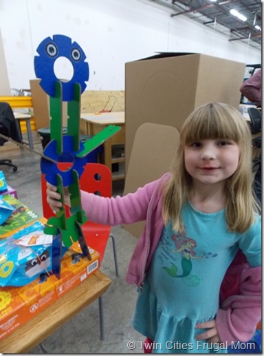 Kits are priced at $14.99 to $24.99 and can be used to build neat things like a doon buggy, dragonfly or robot, or pretty much anything else your kids’ imagination leads them to create. Heidi was proud of the person she created!