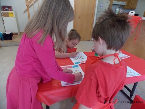 When we arrived all the kids got to wear special kid-sized aprons and sit at a kids table, where they each got to play a healthy snacks game and make healthy snack charts to take home.