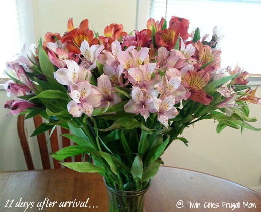 I received a rectangular box with beautiful, fresh flowers at my door via FedEx on April 26th. I didn’t know what kind of flowers I would be receiving (they’re a surprise!), but I was pleased to find an attractively bundled bouquet of fresh Peruvian lilies, hand-tied with a red ribbon.