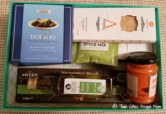 I think my favorite item in the box was the Kourambies Biscuits – they were addictive! I’d definitely order these. The Spicy Pepper Paste was better than I expected – it wasn’t overwhelmingly spicy, and it went well with crackers. The Pasteli was too hard to chew, in my opinion, but sweet. I didn’t like the Stuffed Vine Leaves – the dill and mint flavors weren’t appealing to me. Otherwise, the olive oil is fantastic, and I plan on adding the other items to my meal plans for the coming weeks.