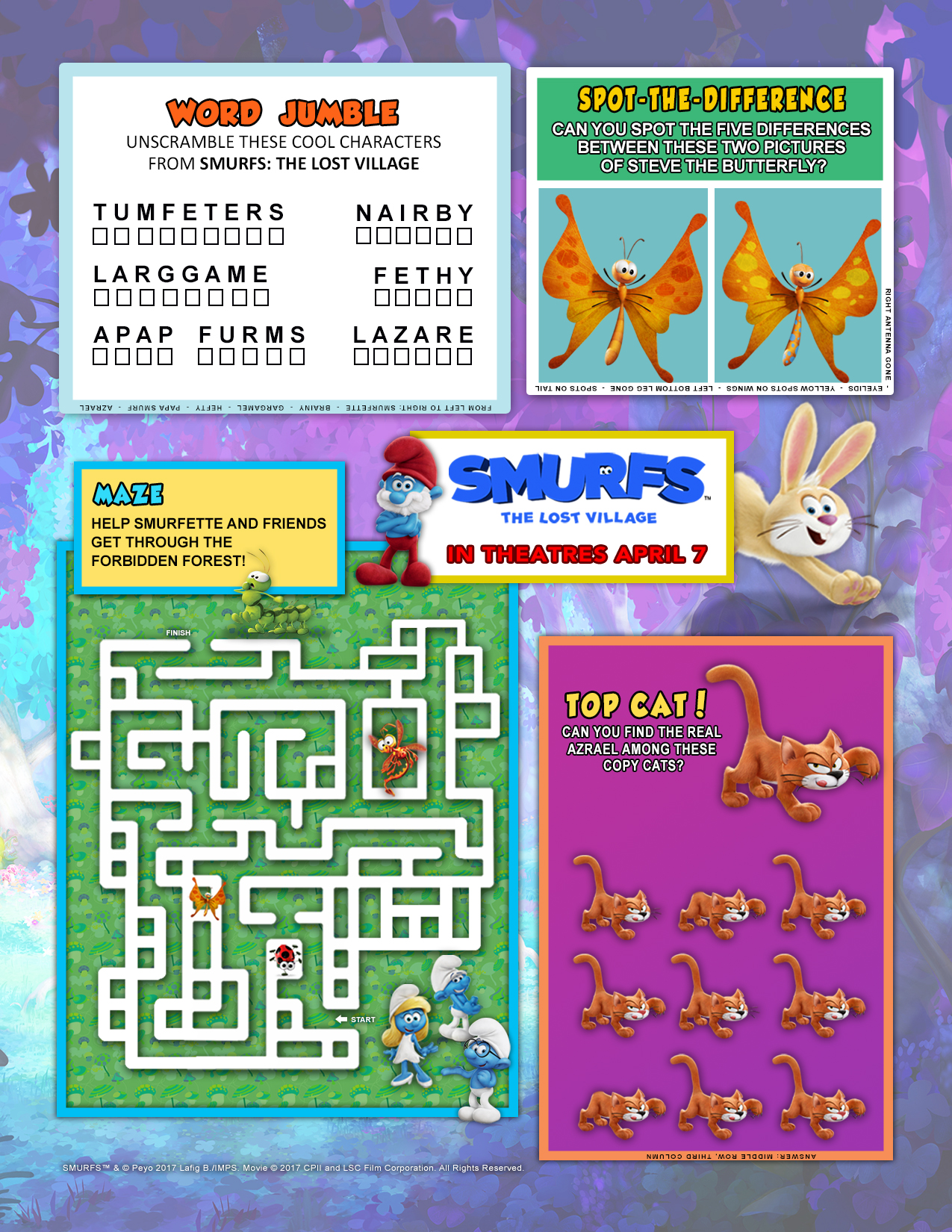 Smurfs: The Lost Village is coming to theatres on April 7th, and I have some FREE printable activity sheets for you!