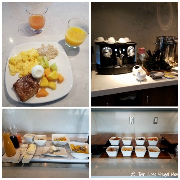 With a Business Class upgrade, you get access to the hotel’s hospitality lounge which includes complimentary breakfast. The breakfast offers eggs, oatmeal, breads, fruit, cheese and coffee. It was delicious! And I had two cups of the Nespresso…