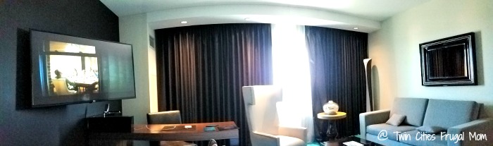 Here’s a panoramic photo of my view from the king bed. (The TV was movable.)