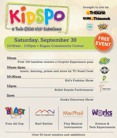 KIDSPO: A Twin Cities Kids Experience is Saturday, September 30th in Eagan, and it’s a don’t-miss event for ALL families in the Twin Cities!