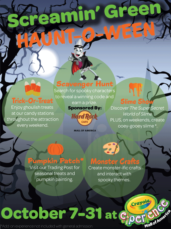 Crayola Experience “Screamin’ Green Hauntoween!” Event at the Mall of America – Get discounted tickets for this special event running now through October 31st, or any day via my special link!