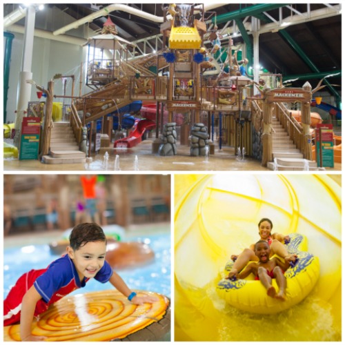 - The 75,000 square-foot indoor water park is their signature attraction, which will be heated to a comfortable 84 degrees (just like the Water Park of America – the water was so nice and warm there too). It also includes Fort Mackenzie – a multi-level interactive water fort treehouse with a massive tipping water bucket, Crooked Creek lazy river, Slap Tail Pond wave pool, River Canyon Run family raft ride, along with high thrill water slides, water features for toddlers and more.