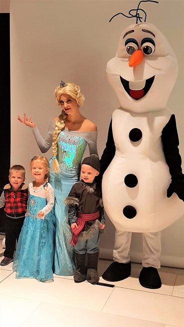 Meet and get a picture with Santa by a photographer (actual Santa and setting shown). Photo opportunity to take pictures of your little ones with The Ice Sisters and Snowman in front of their blue wintery background (as shown). You’ll get great pictures for the holiday without the mall hassle!