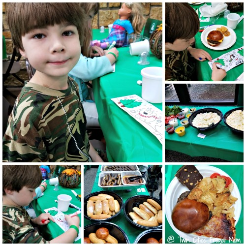 But on top of the fun that Edinborough Park offers, we were treated to an awesome lunch with hamburgers, brats, pizza, sides and desserts, along with fun crafts for kids to do at our tables. We decorated mugs and snowglobes that we were able to take home which the kids loved so much they almost forgot to eat their food!