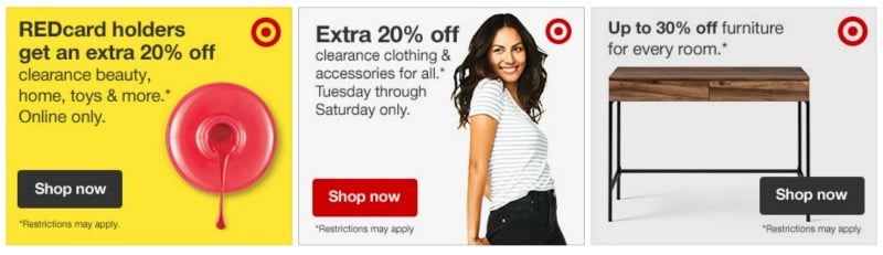 - 20% off Clearance on Target.com for REDCard holders. Valid 12/24-12/31