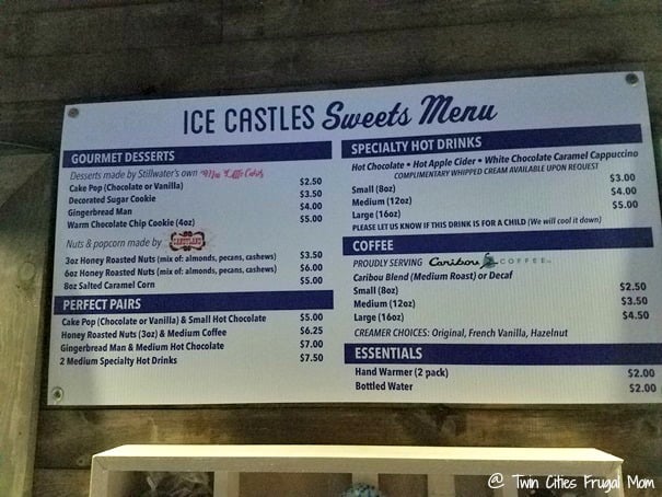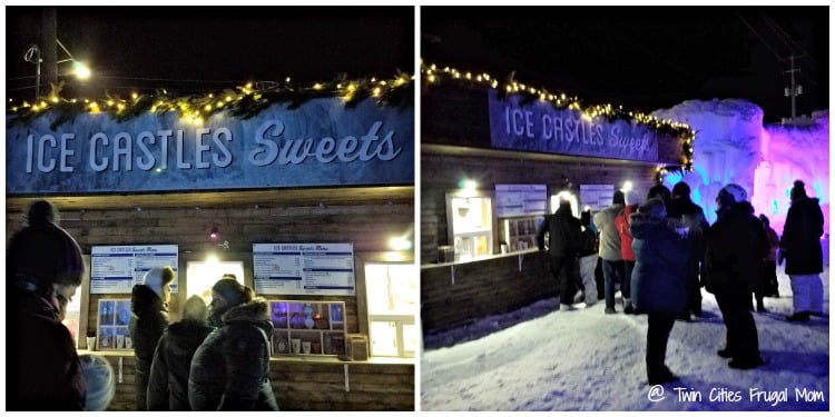 I’m personally not crazy about the prices. It adds up fast for a family. For the short amount of time most people spend here, it’s not cheap. Honestly, we spent about 15 minutes here because of the cold, and mostly walked around, took pictures, and got some goodies to go and enjoy in our warm car. But my family and I don’t handle the cold well (it IS January in Minnesota). We could have bundled up better, especially our feet and heads. But still, you’re walking through crushed ice and snow to look at pretty ice and snow. You will be cold. Thankfully though, they have fire to warm up by in a couple places, and hot beverages to buy. Helps take the edge off.
