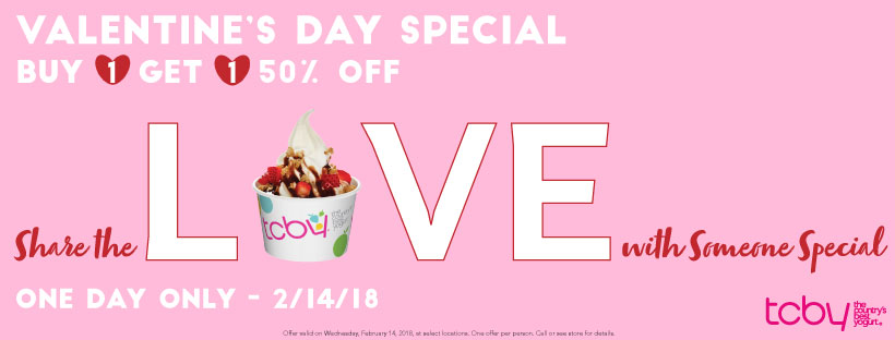 Buy One, Get One Frozen Yogurt Free on 2/14.