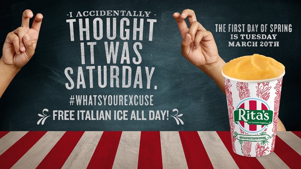 It seems that Rita’s Italian Ice is in the free cool treat mood for the first day of spring too.