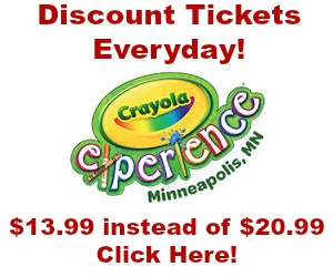 And for another GREAT deal – get discount tickets for the Crayola Experience Mall of America through my site EVERY DAY! Get tickets for only $13.99 each instead of $20.99!