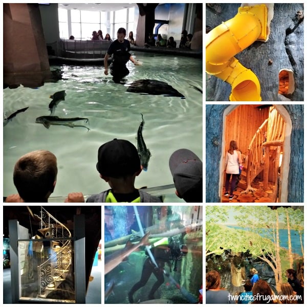 We watched a sturgeon feeding and you could gently touch the fish from above. We saw scuba divers in the tanks, live demonstrations, a shipwreck area, and a play area for kids.