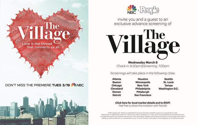 NBC has a new show called “The Village” premiering on Friday, March 19th at 9pm (CT), and YOU ARE INVITED to a special advance screening at Showplace ICON in St. Louis Park on Wednesday, March 6th at 7:00pm!