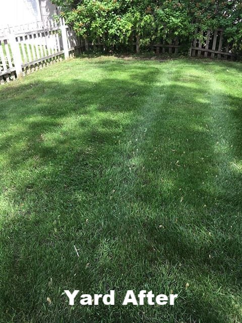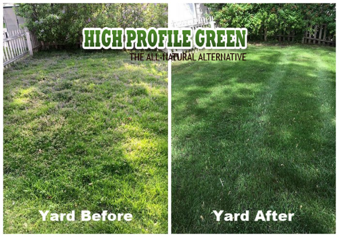 I was lucky enough to know some friends who owned a company, High Profile Grounds Maintenance and they started an ALL NATURAL division, High Profile Green Solutions in 2016. They were offering a fertilizer and weed control program that was made of All Natural ingredients (made of sugar beet by-products!) and it worked wonderfully AND it is SAFE for people, pets and the environment! I hired them to do my lawn in 2016 and my yard looked amazing! See these pictures of my yard before & after!