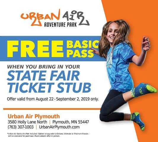 At both Twin Cities locations, you can get a FREE basic pass when you bring in your state fair ticket stub! This is a $13.99 value and gives you access to the trampolines ALL DAY, but you can upgrade.