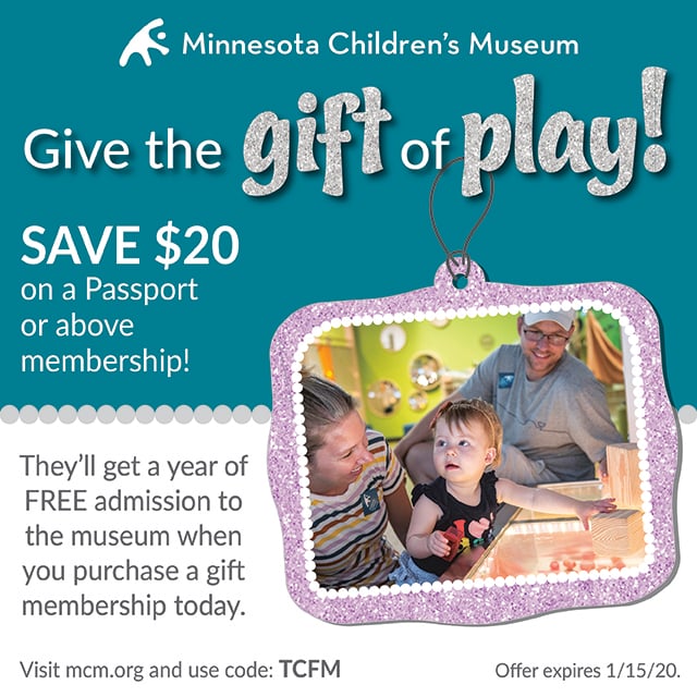 Looking for the perfect gift for a special family in your life? Give the gift of play with a membership to Minnesota Children’s Museum and SAVE with my discount! They’ll get free admission to the museum all year, exclusive access to member events and more.
