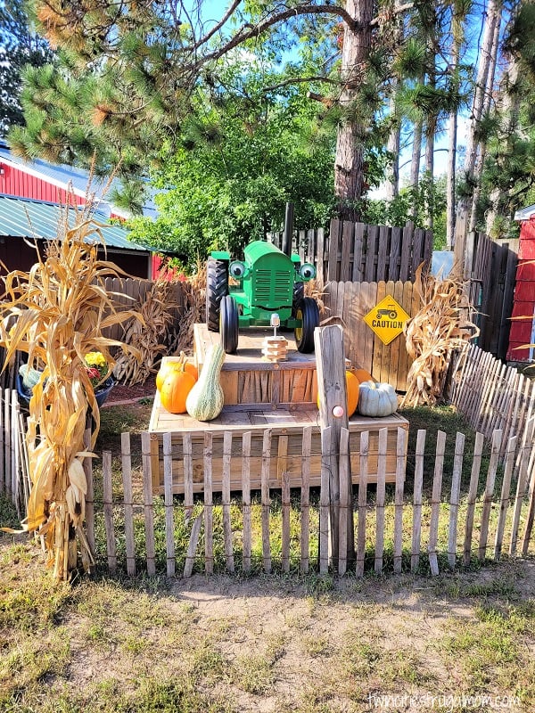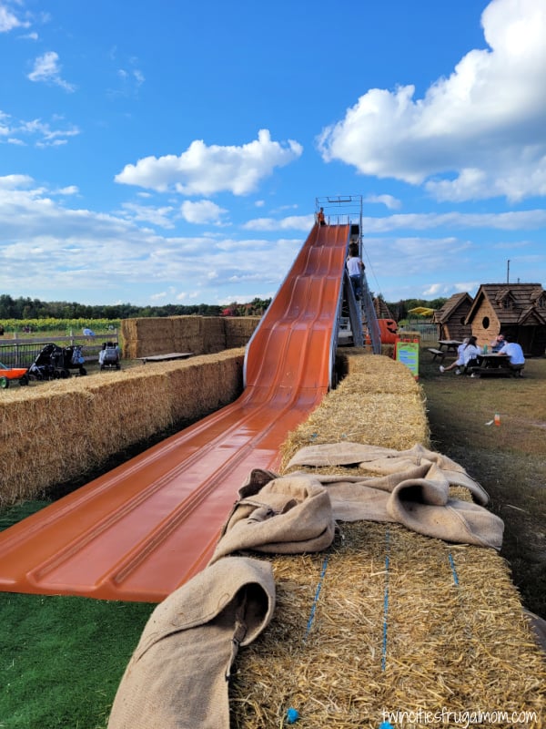 There really is so much for everyone, and all ages. Little kids will particularly love the corn pit, tricycles and play sets, slides, and farm animals. Older kids will especially love the ziplines, apple launchers, and pumpkin cannon. All ages will love the food, the photo opps, the funny talking and singing animatronics, and the trolley that takes you to the pumpkin patch to pick pumpkins!