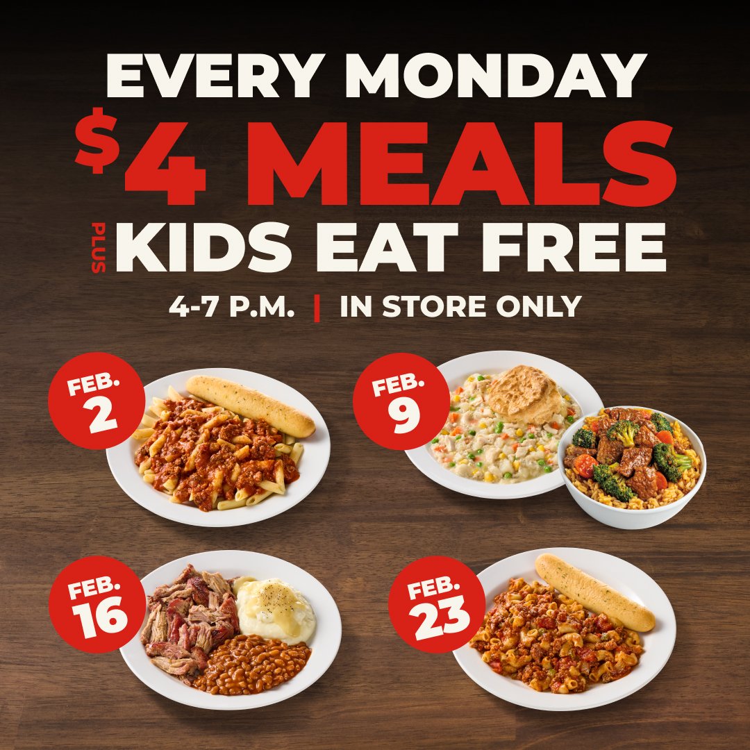 At Hy-Vee, there’s a $4 hot meal deal every Monday from 4:00 – 7:00pm, and it’s honestly one of the easiest ways to get dinner on the table without cooking — or blowing the budget. Even better? Kids 12 and under eat FREE!