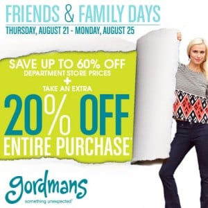 Exclusive Gordmans 20% Off Coupon (Good August 21 – 25, 2014)