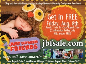 Just Between Friends Coon Rapids Children’s Consignment Sale August 8-12 & FREE admission coupon