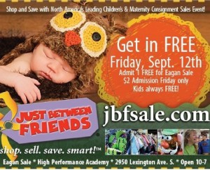 Just Between Friends Eagan Children’s Consignment Sale: September 12 – 15!