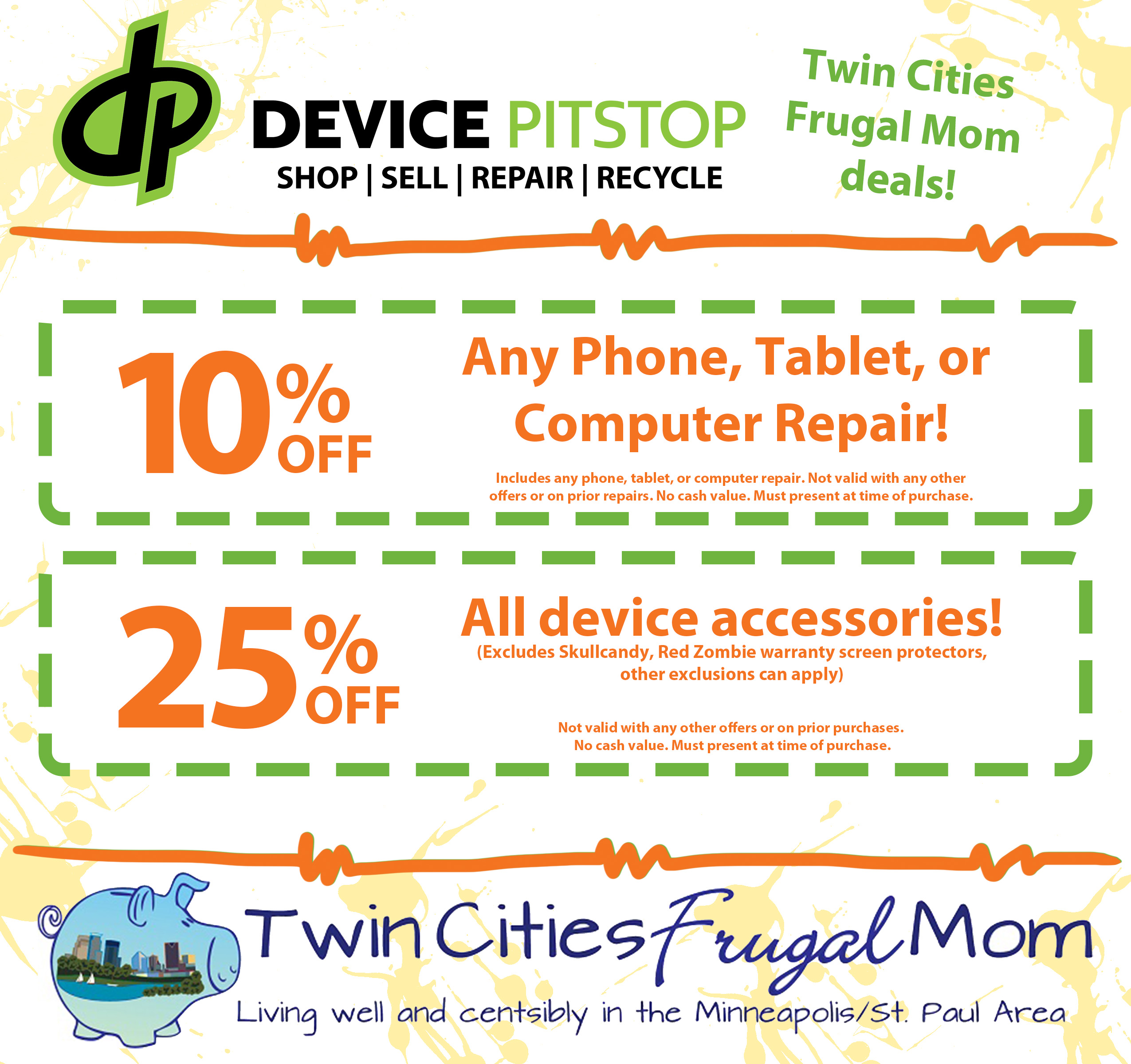 Device Pitstop is Minnesota’s No. 1 repair store and refurbished electronics retailer for iPhones, laptops, tablets, Android-based smartphones, game consoles, drones and much more. It’s also owned by a Twin Cities mom! I wrote about my first experience there here.
